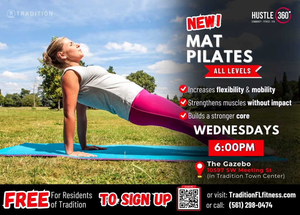 Join us every Wednesday at 6 PM at the Gazebo for a revitalizing Mat Pilates class! This low-impact workout focuses on strengthening your core, improving flexibility, and enhancing posture through controlled movements on the mat. Whether you’re a beginner or more experienced, our expert instructor will guide you through a series of exercises designed to challenge and tone your muscles. Set against the serene backdrop of the Gazebo, it’s the perfect way to unwind, build strength, and feel great. Don’t miss this opportunity to stretch, strengthen, and energize your body!