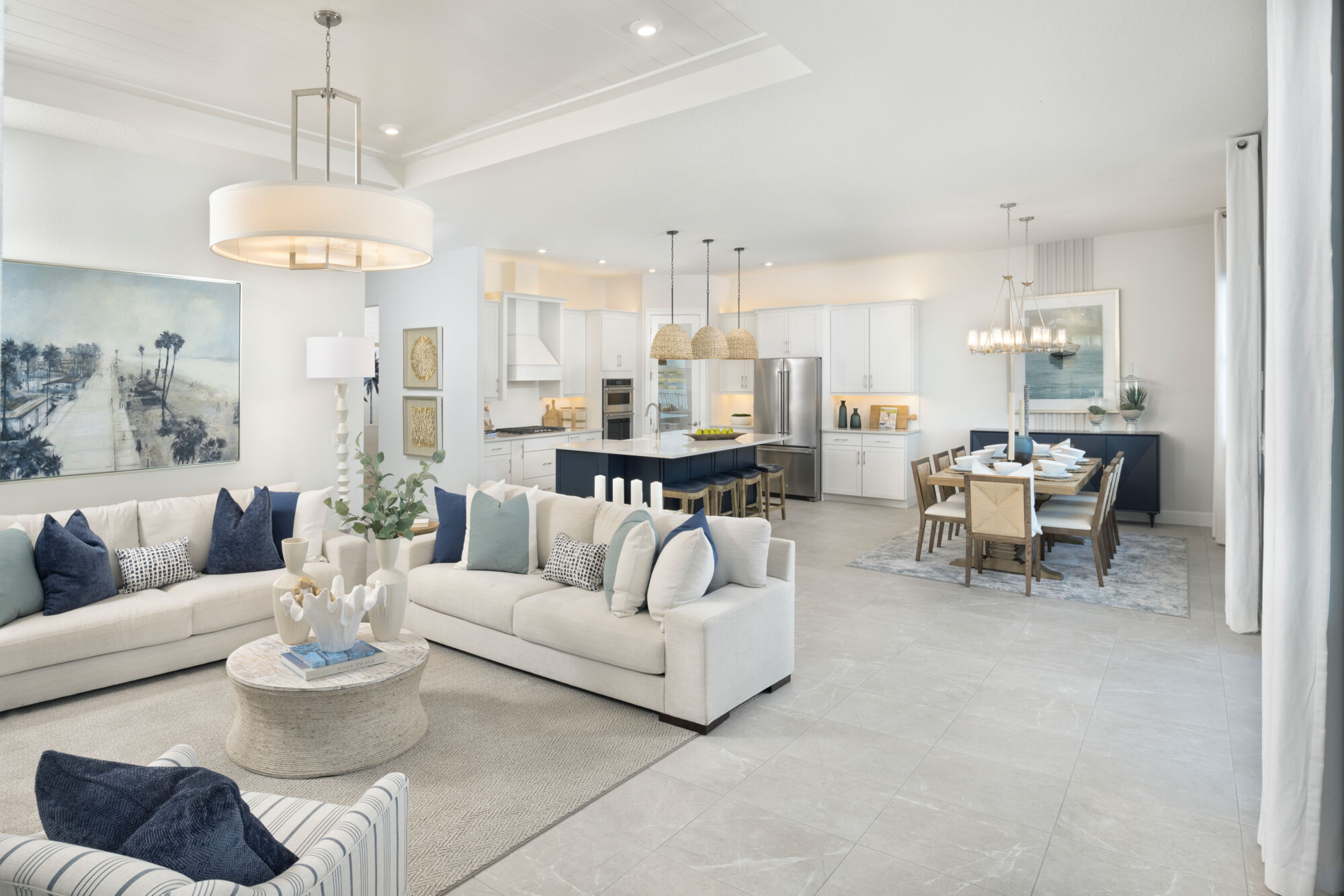 The 2,942 square foot Noble floorplan offers comfortable, spacious living space in an attractive, one-story configuration. The covered front porch leads to a foyer with flex room on one side and the Owners entry on the other with a large, open and inviting Great Room, dining and kitchen area beyond. The private, first-floor owners suite includes two large walk-in closet and bath. The additional three bedrooms all share a full bath with dual sinks and offer additional space for guests and entertaining.