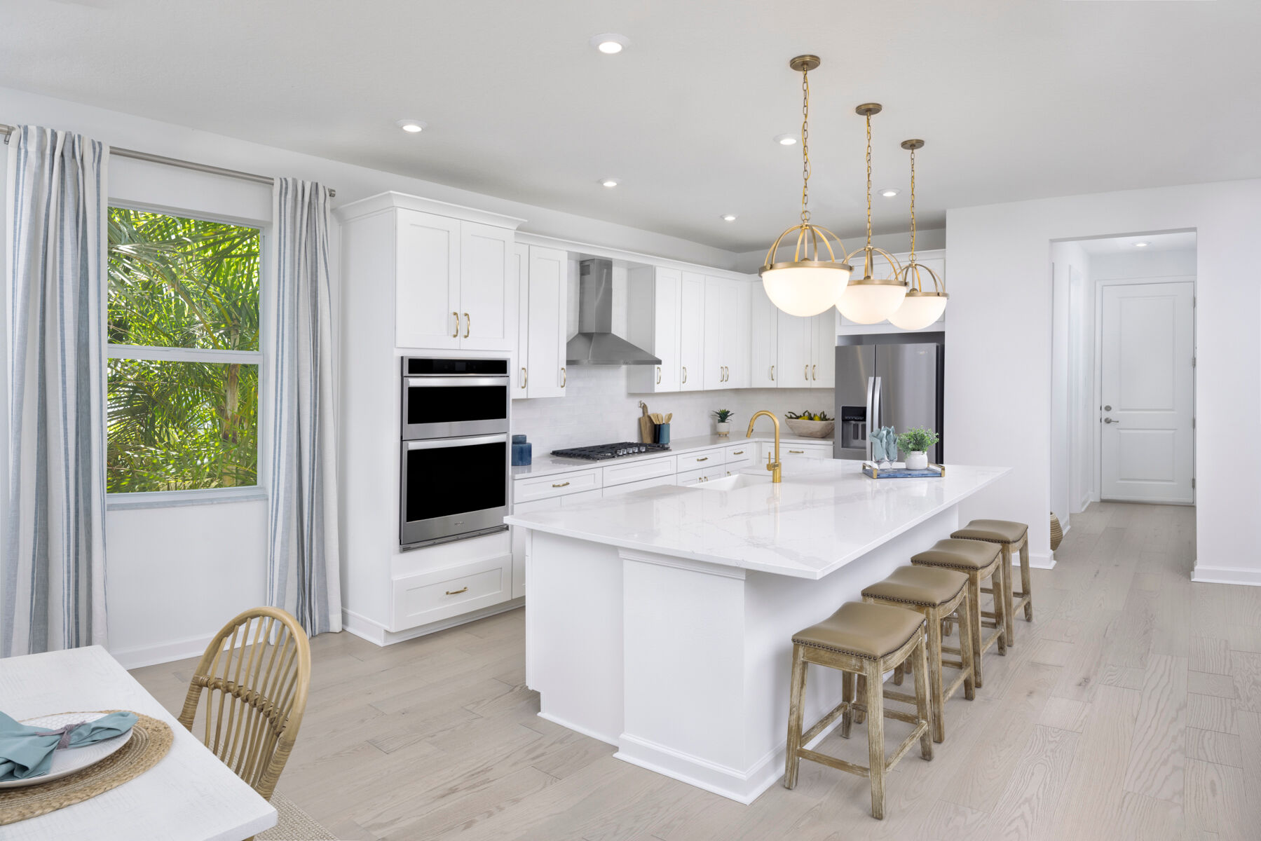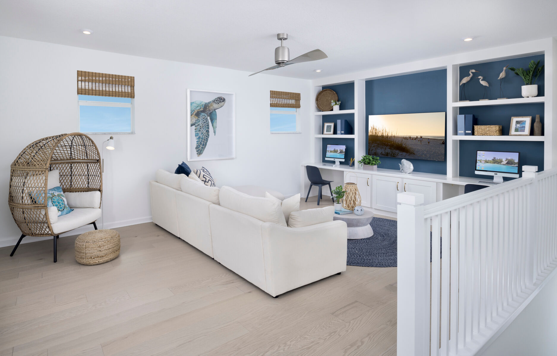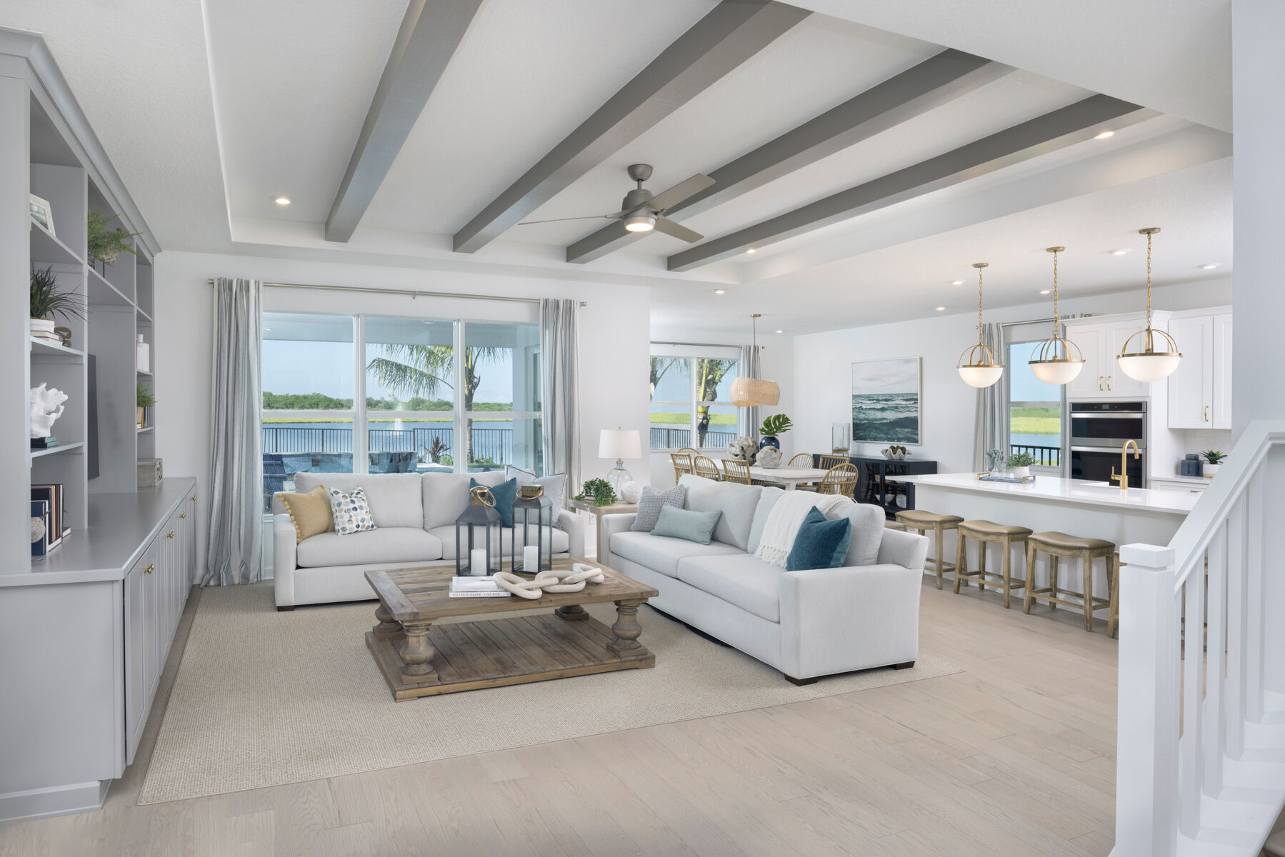One of the most unique and best selling floorplans in the Halo Collection at Kenley is the Rowan. This larger than life, 3,272 sq. ft. plan features a first floor owners suite, four bedrooms and 2.5 baths in addition to an unbelievable amount of living space. For families seeking extra bedrooms, the Rowan has the ability to be upgraded to up to a six bedroom, four bedroom home. Step through the front doors of this beautiful house and you are met by a flex space perfect for an office, colossal laundry room, gathering room, kitchen, and dining room. Up the stairs find a convenient and spacious loft perfect for a secondary lounge surrounded by three considerably sized bedrooms. Out back on the covered lanai, kick back and relax knowing that you have found the perfect home for you.