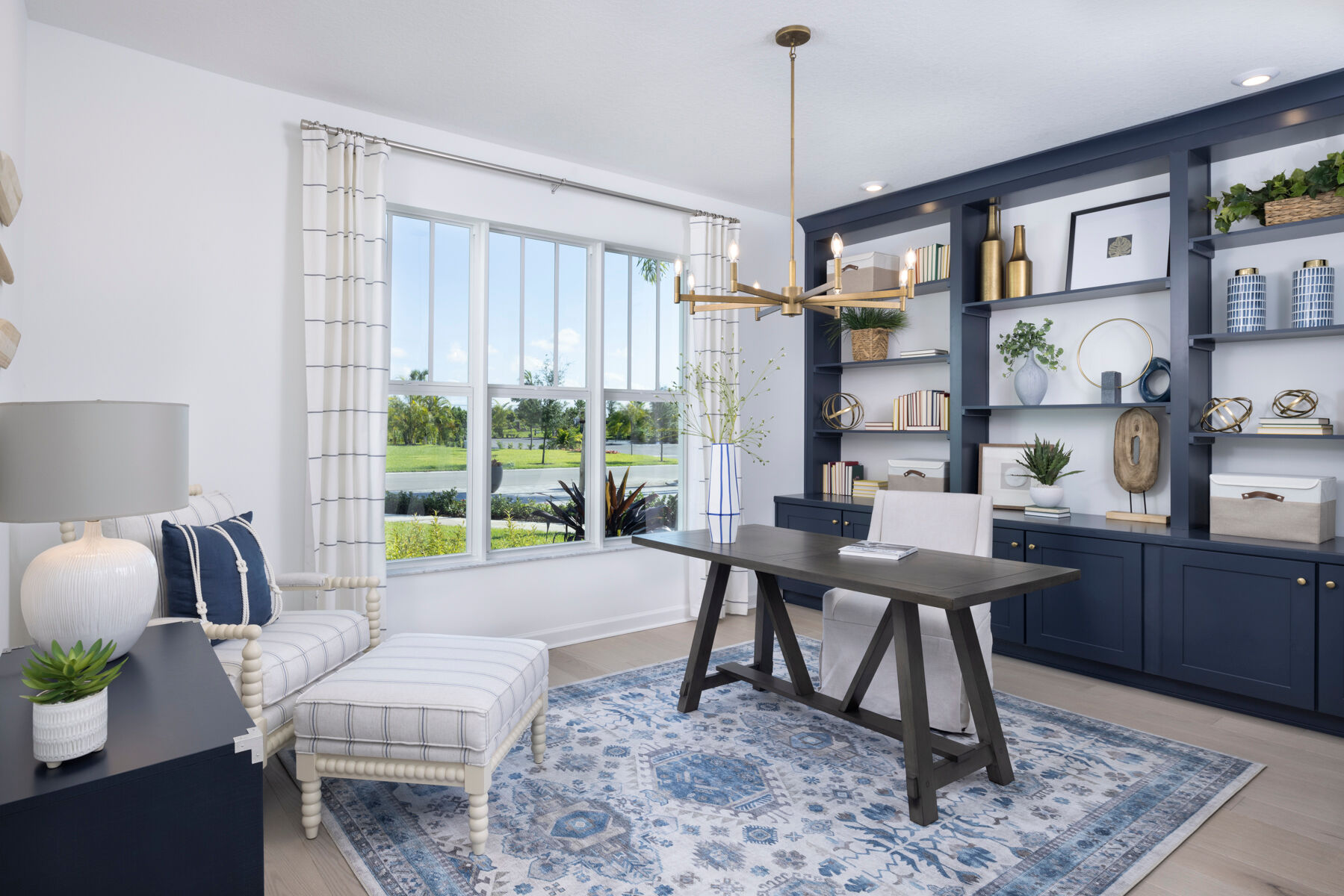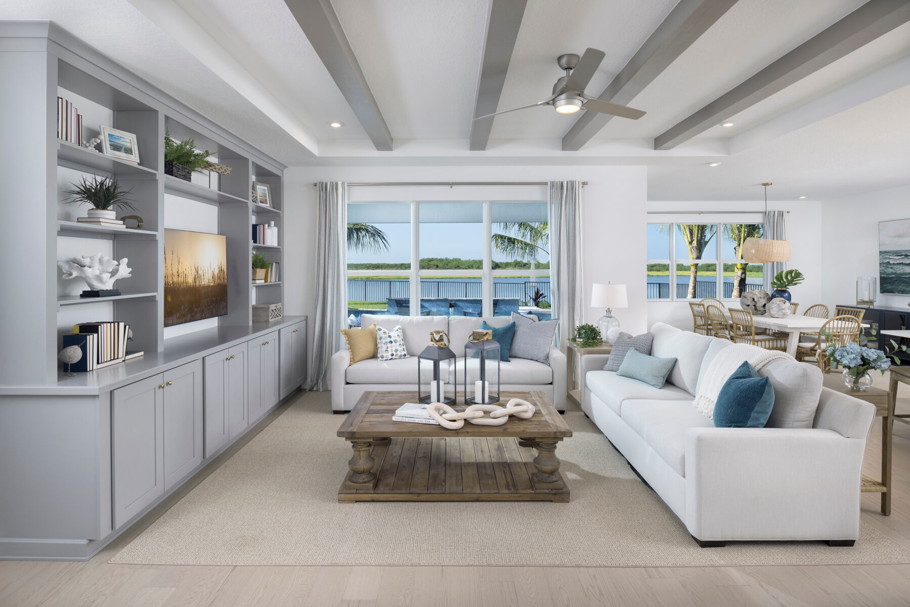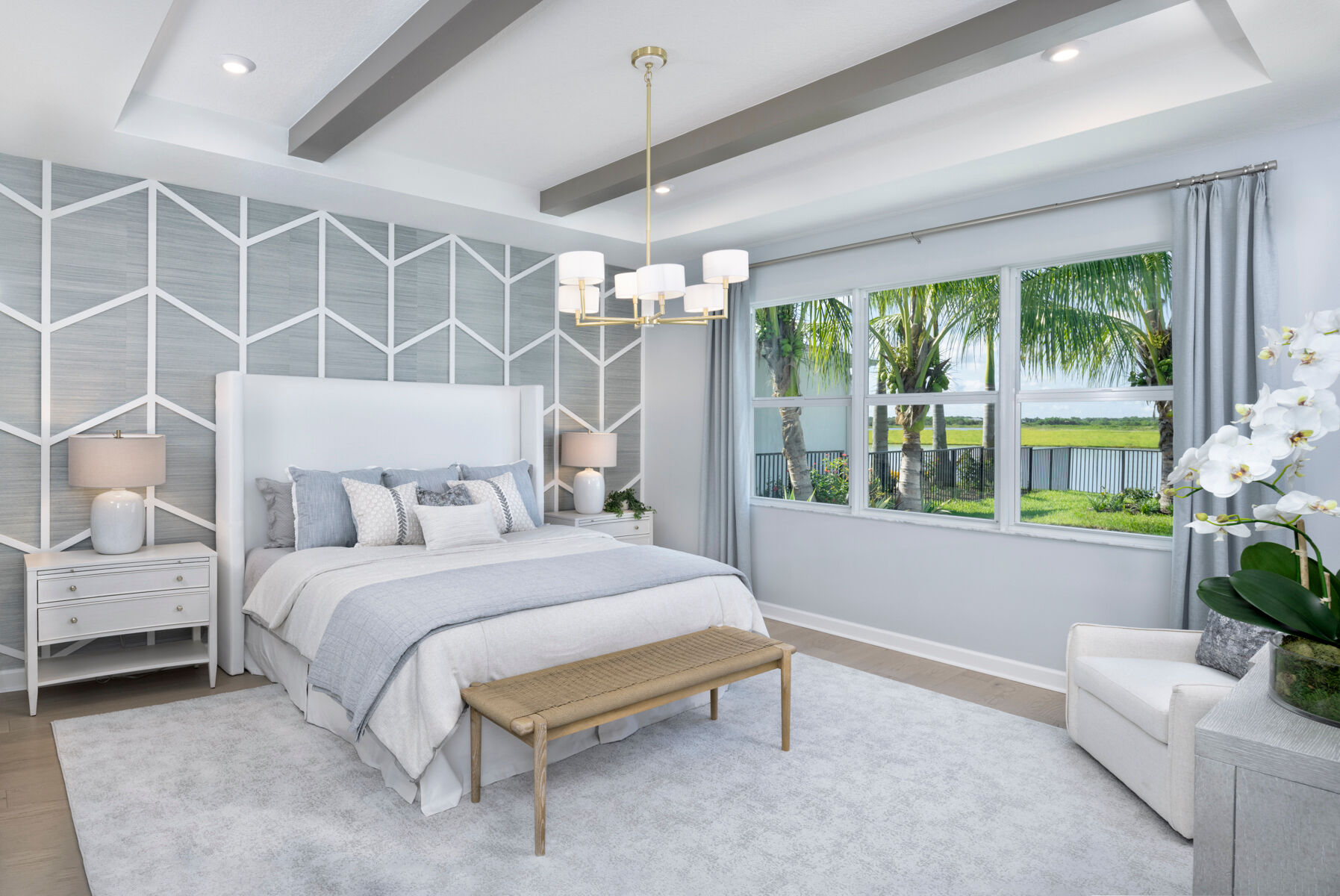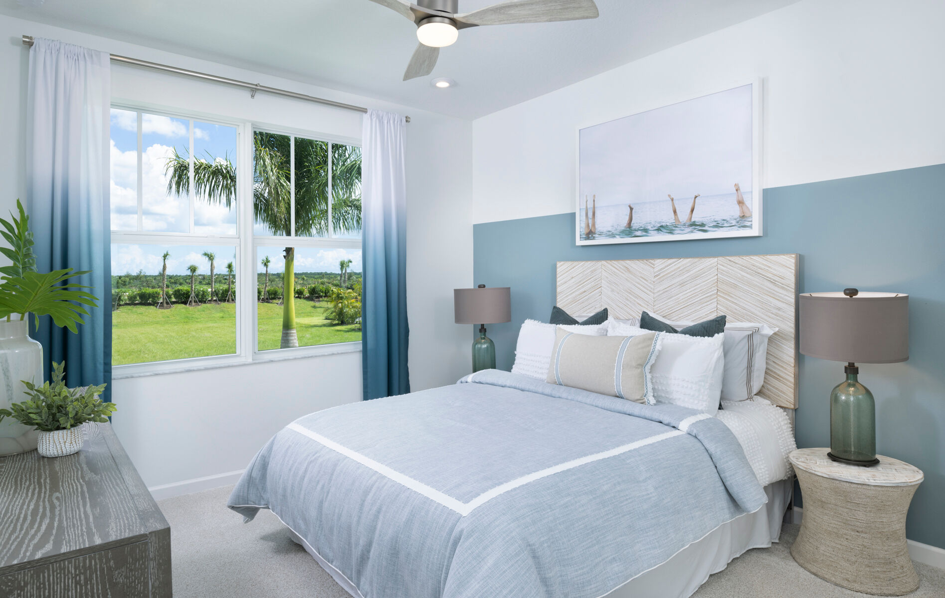 One of the most unique and best selling floorplans in the Halo Collection at Kenley is the Rowan. This larger than life, 3,272 sq. ft. plan features a first floor owners suite, four bedrooms and 2.5 baths in addition to an unbelievable amount of living space. For families seeking extra bedrooms, the Rowan has the ability to be upgraded to up to a six bedroom, four bedroom home. Step through the front doors of this beautiful house and you are met by a flex space perfect for an office, colossal laundry room, gathering room, kitchen, and dining room. Up the stairs find a convenient and spacious loft perfect for a secondary lounge surrounded by three considerably sized bedrooms. Out back on the covered lanai, kick back and relax knowing that you have found the perfect home for you.
