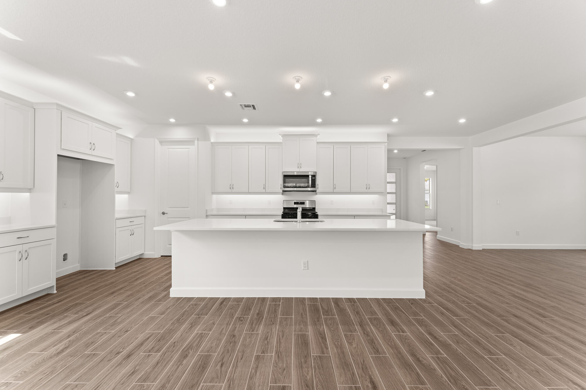 The gorgeous Clarion floorplan in Telaro's Tranquility Collection, offers 2,351 square feet of pure livability. With a thoughtfully designed flow through a welcoming foyer, past a charming flex room, into an expansive open kitchen, dining, and great room, every detail in the Clarion is inviting. This 2 bedroom, 2.5 bathroom plan offers sweeping backyard views, a spa-like bath and spacious dual walk-in closet in the owner's suite. In addition, a large laundry room, covered lanai as well as the option to convert the flex room into a study or third bedroom. Equally perfect for entertaining or keeping things casual, the Clarion offers something for every lifestyle, making it a fan-favorite.